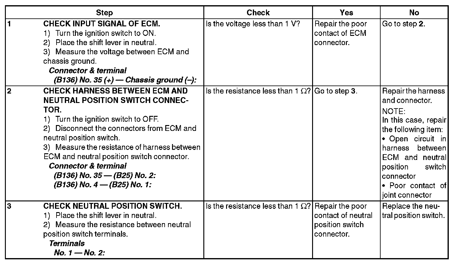 DTC P0852 NEUTRAL SWITCH INPUT CIRCUIT HIGH (MT MODEL)DTC DETECTING CONDITION: