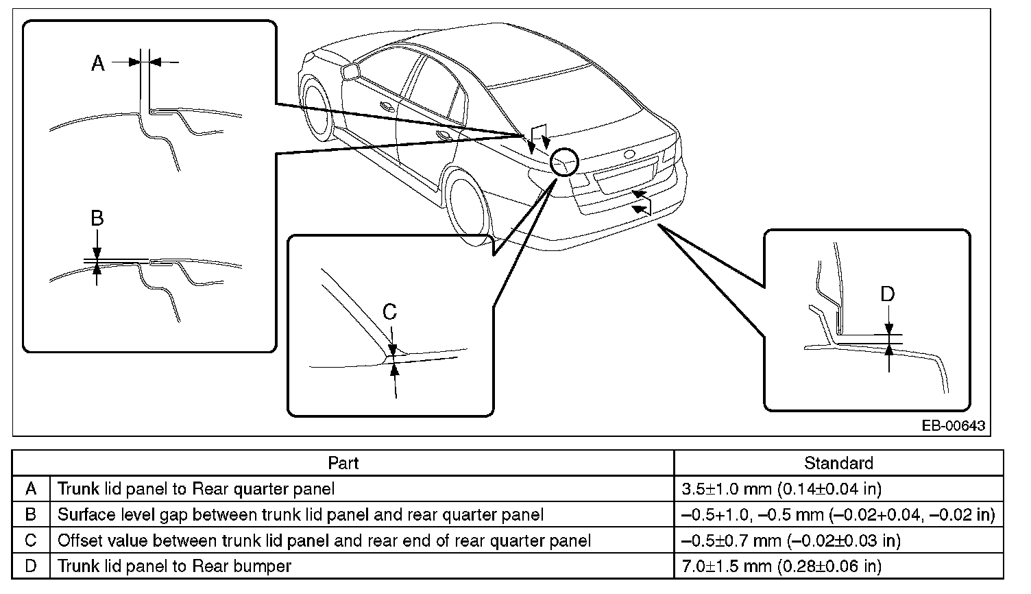 2. Adjust the gap between trunk lid panel and body surface.
