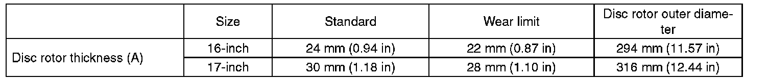 Disc/Rotor Wear Limit