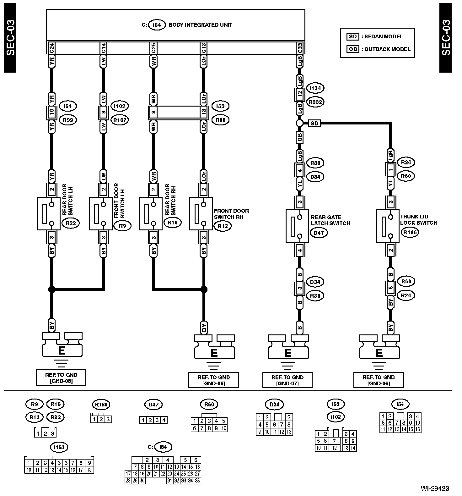 The locations of the Connectors or Grounds shown within these diagrams can be found via the connector or ground number at Vehicle Locations.