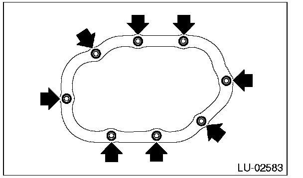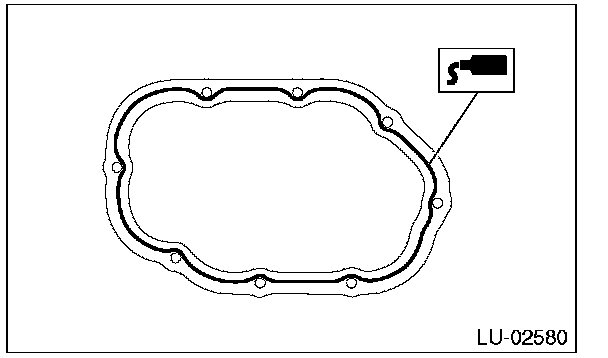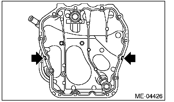 25) Apply liquid gasket to the mating surfaces of oil pan, and install the oil pan.