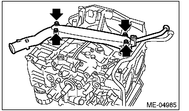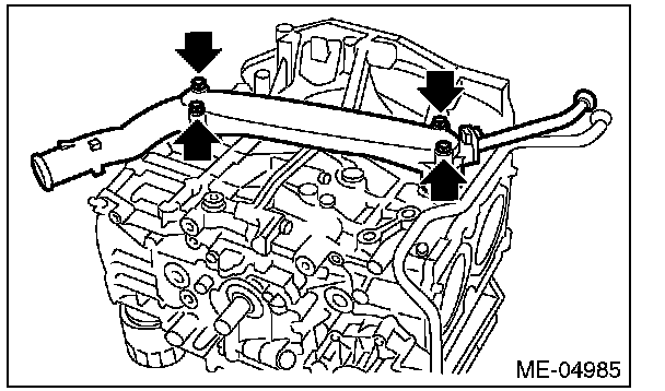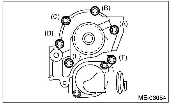 ^ When installing the water pump, tighten bolts in two stages in alphabetical order as shown in the figure.