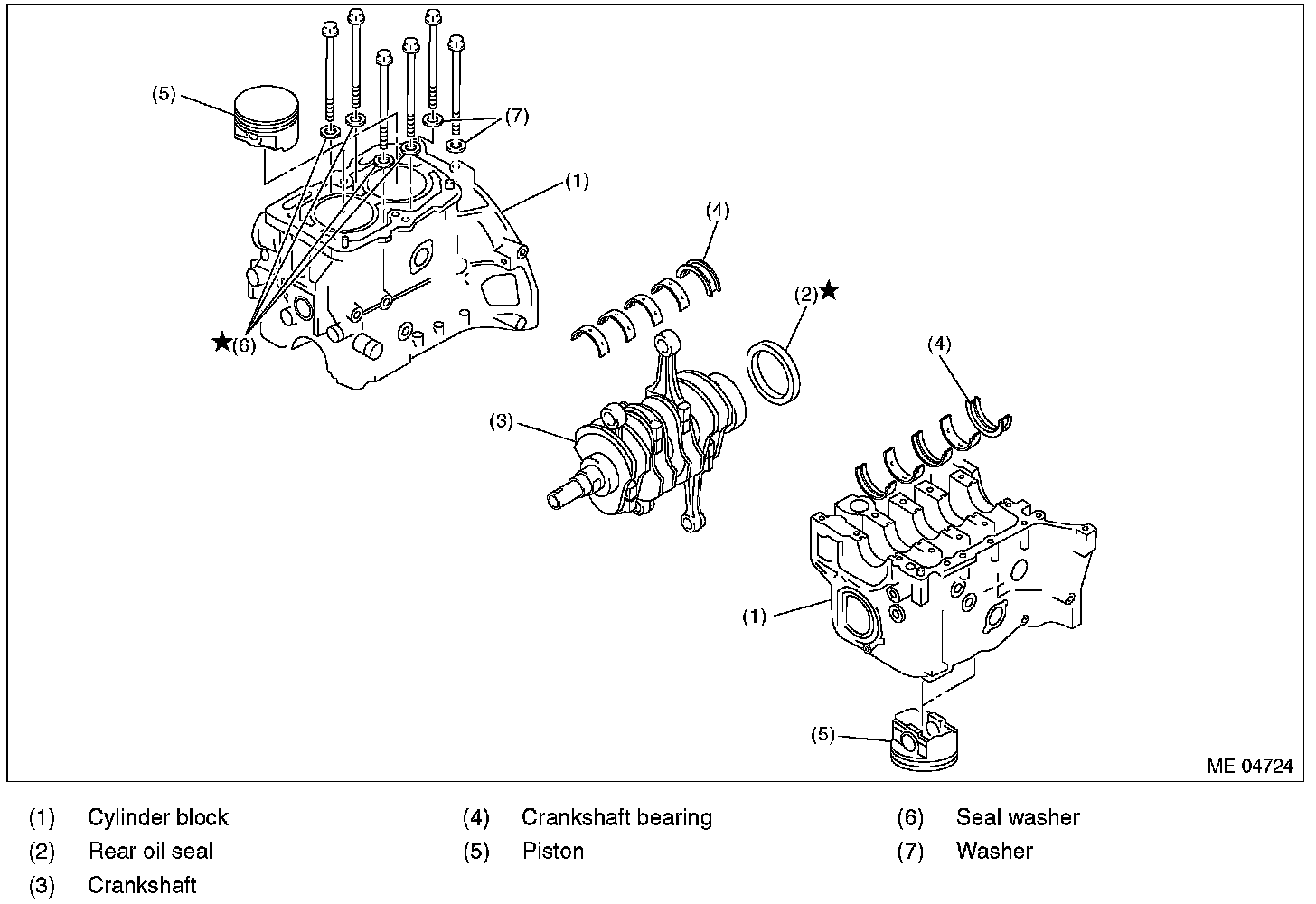 1) Remove oil on the mating surface of cylinder block before installation. Apply a coat of engine oil to the bearing and crankshaft journal.