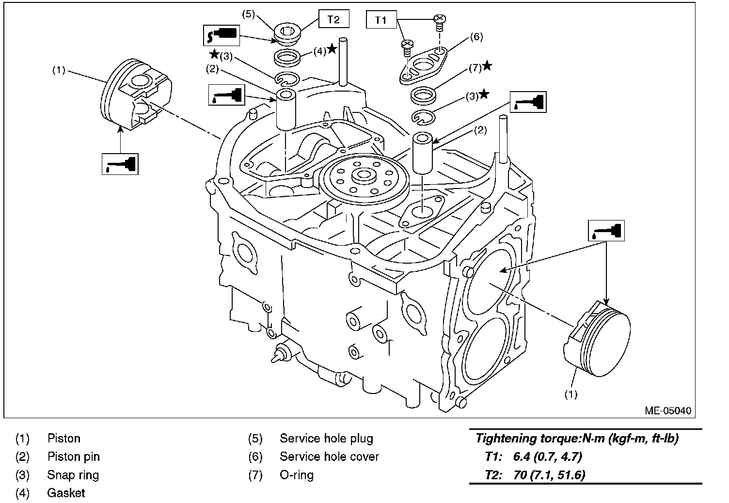 T1: 6.4 Nm (0.7 kgf-m, 4.7 ft-lb)