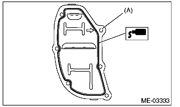 27) Apply liquid gasket to the mating surfaces of the oil separator cover and the threaded portion of bolt (A) shown in the figure (when reusing the bolt), and then install the oil separator cover.