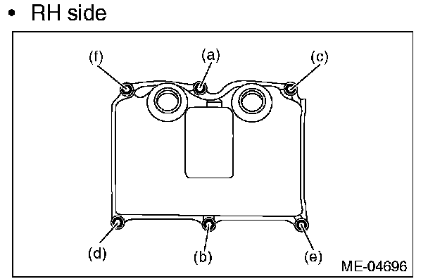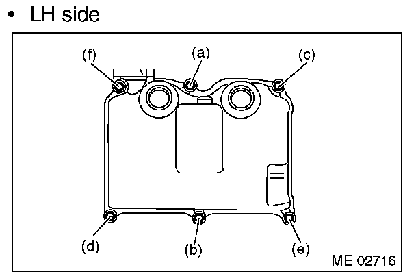 (2) Temporarily tighten the rocker cover bolts in alphabetical order shown in the figure, and then tighten to specified torque in alphabetical order in two steps.