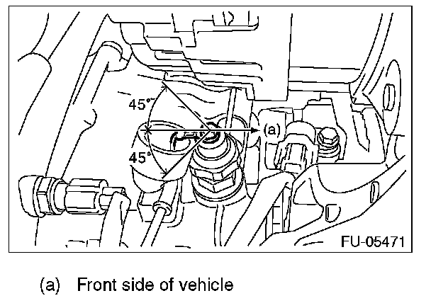 - The oil pressure switch harness must be positioned to be within the range of a 45 ° angle on either left or right toward the rear of the vehicle.