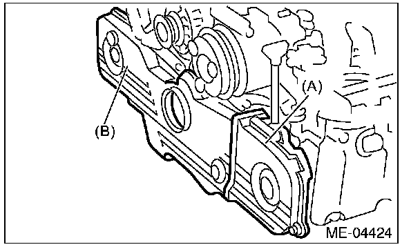 4) Remove the front timing belt cover (B).