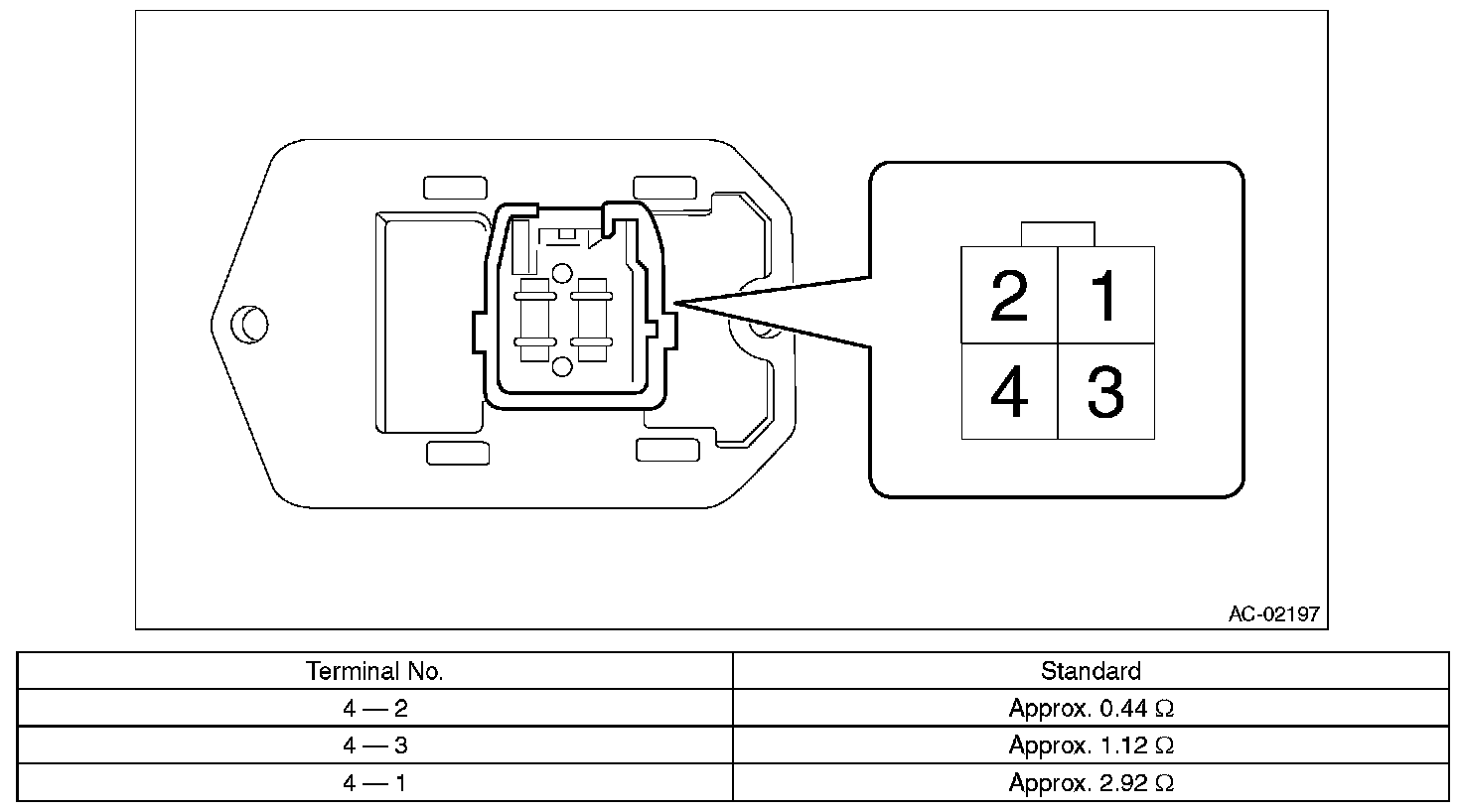 2. Check the resistance between blower resistor terminals.