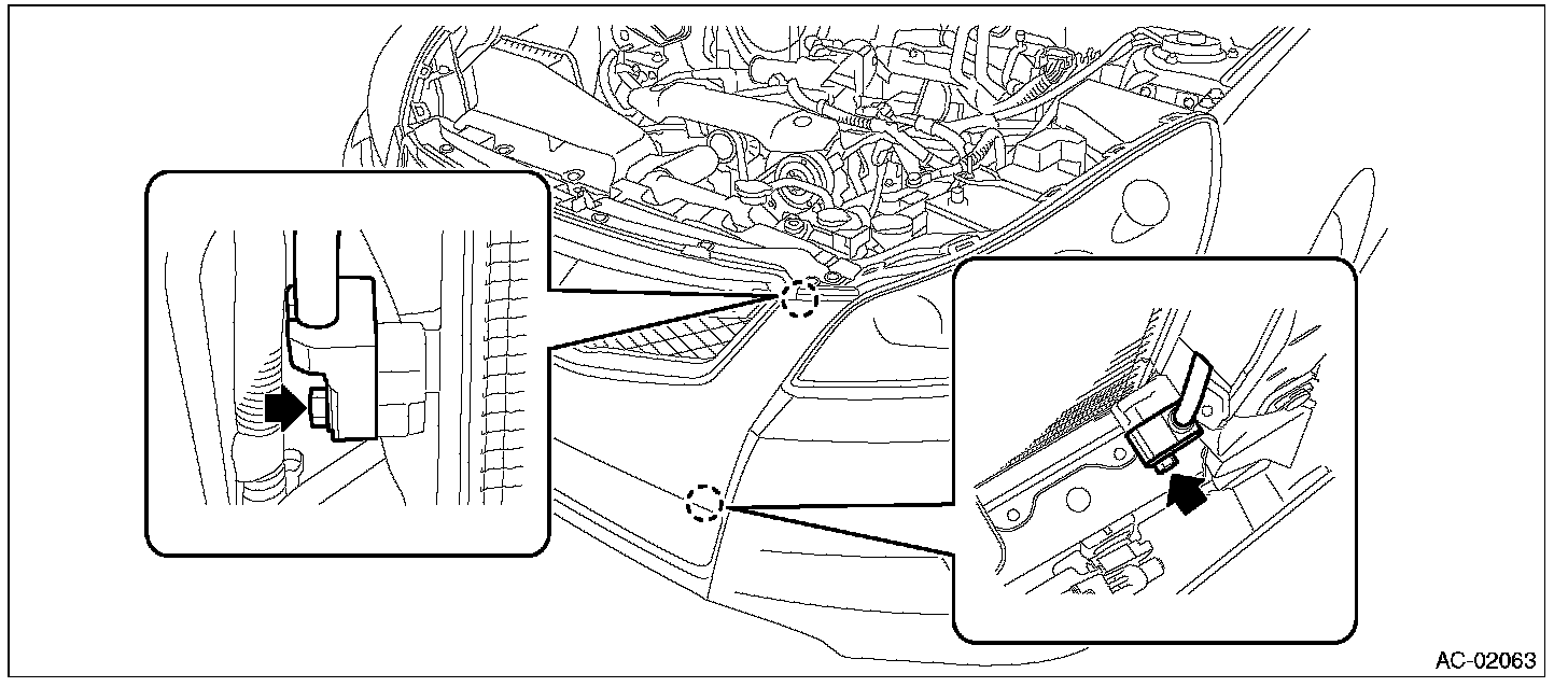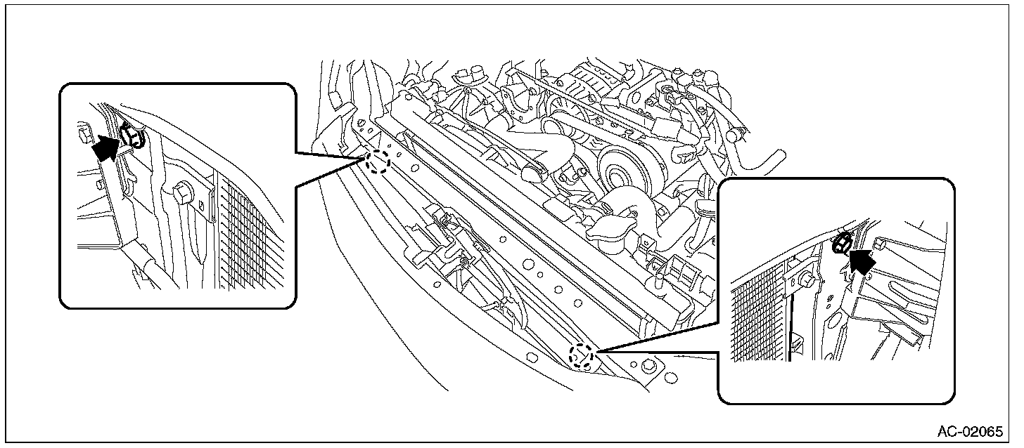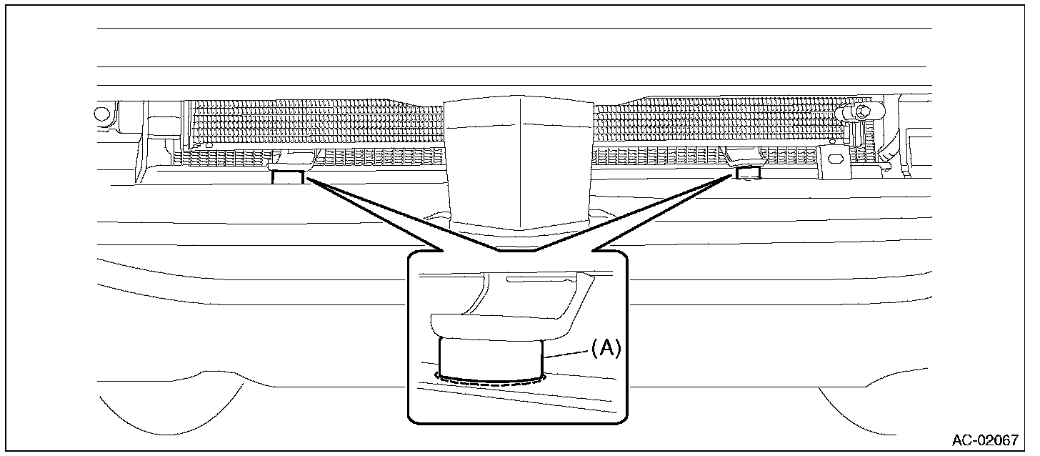 - Confirm that lower guide (A) of condenser fits into holes on radiator panel.