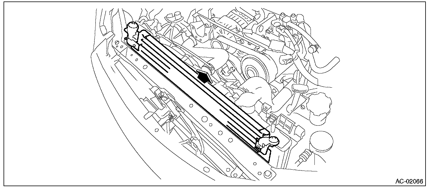 2. By lifting the condenser, pull it out through the space between the radiator and the radiator panel.