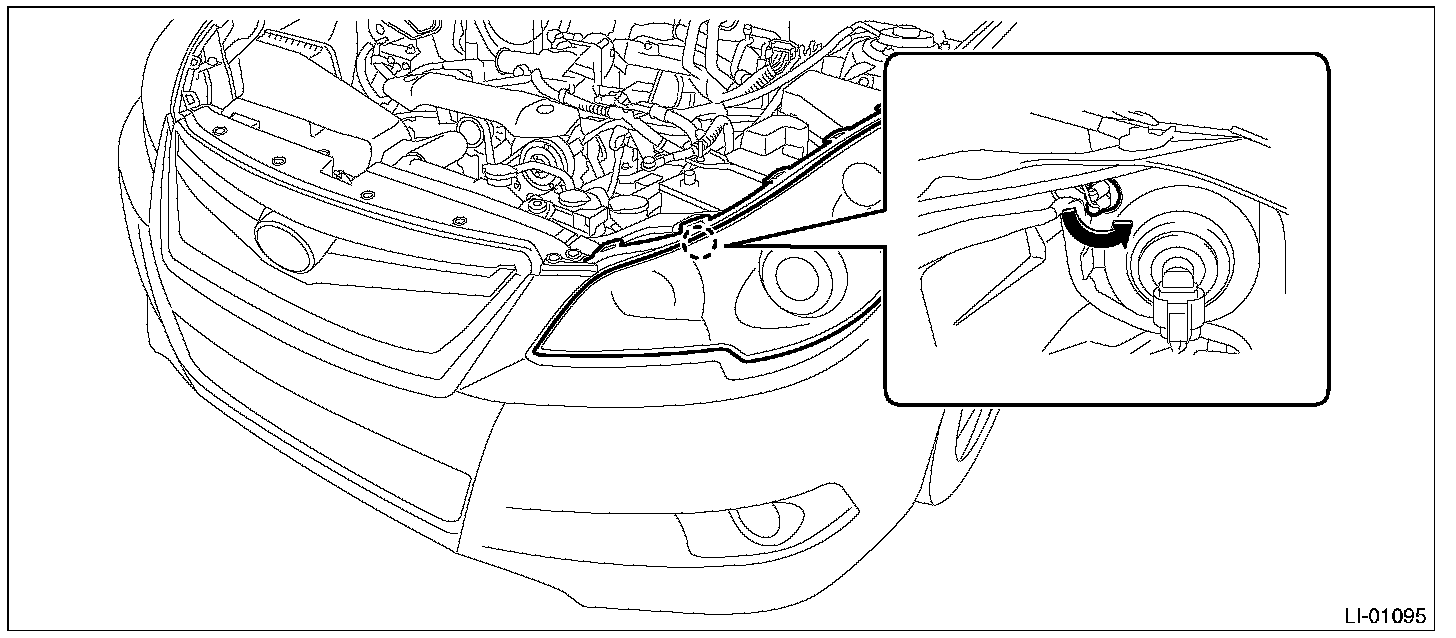 NOTE: Move the battery rearward as required. (When removing the parking light bulb LH)