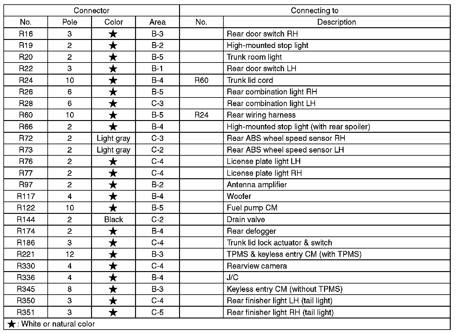 REAR WIRING HARNESS AND TRUNK LID CORD