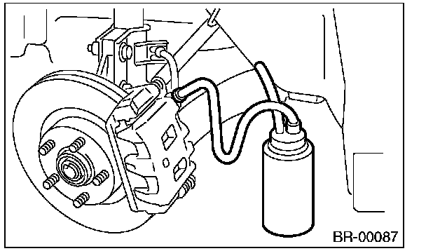 While bleeding air, keep the reservoir tank filled with brake fluid to prevent entry of air.