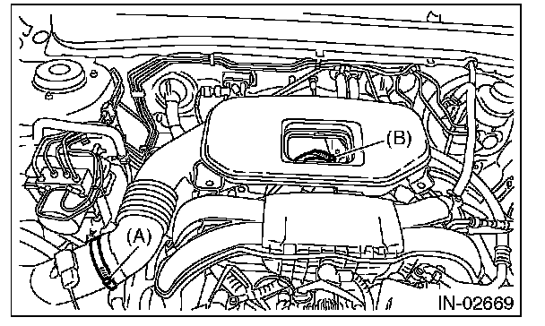 2. Remove the cover (A) and clip (B) from air intake boot assembly.