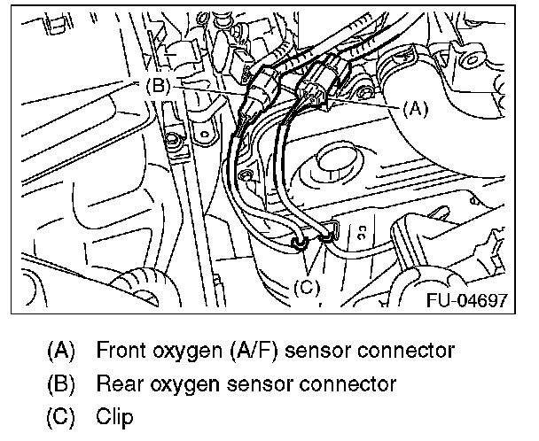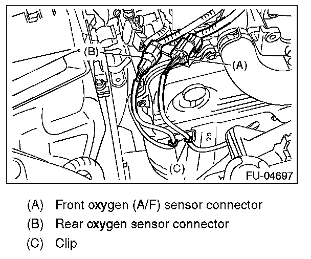 3. Disconnect the rear oxygen sensor connector, and remove the clip holding the rear oxygen sensor harness.