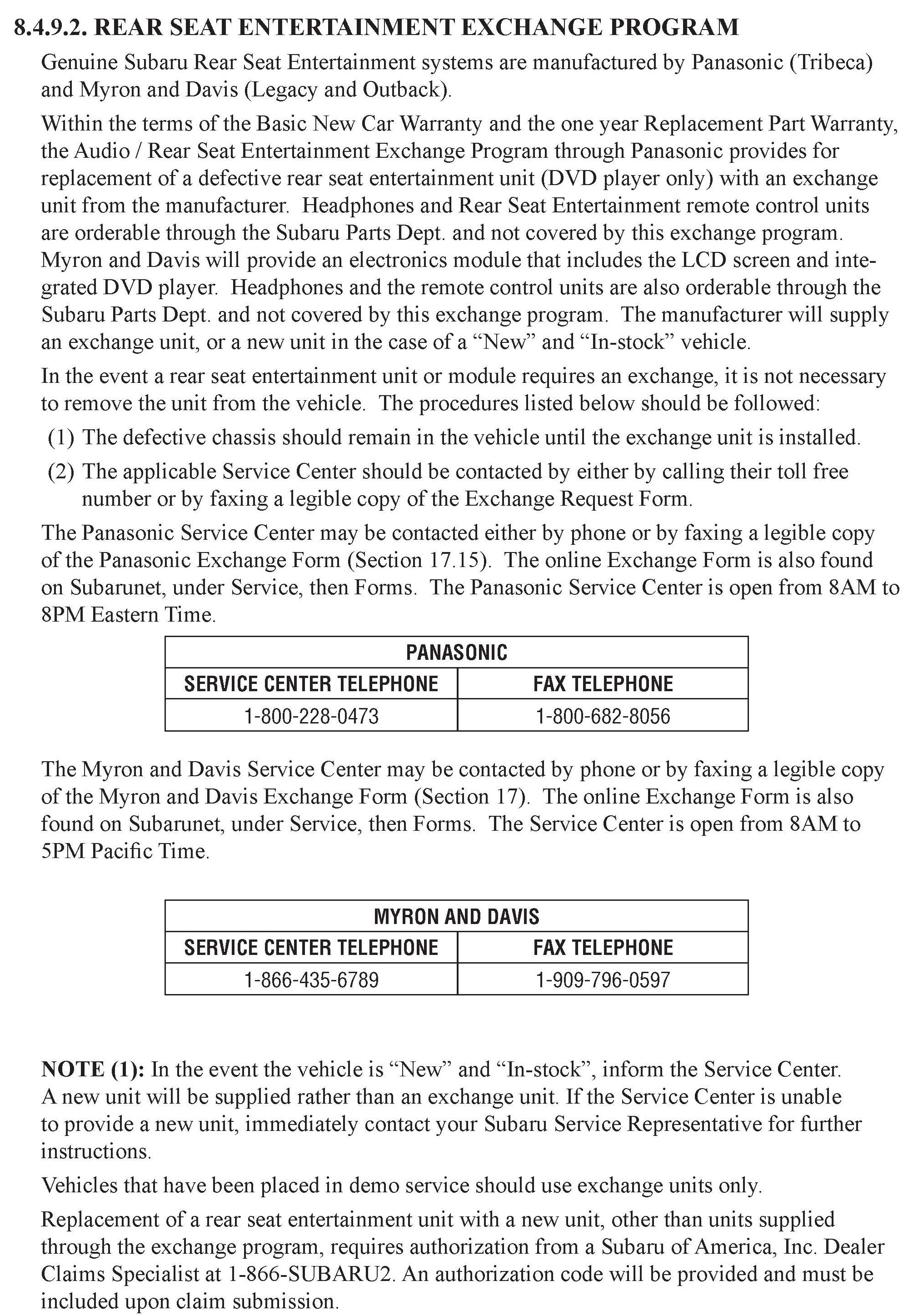 ^ 8.4.9.2 Rear Seat Entertainment Exchange Program