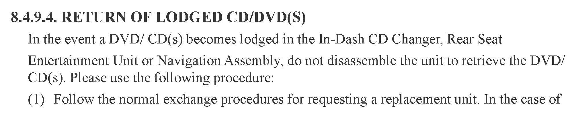^ 8.4.9.4 Return of CD/DVD's Lodged in an in-Dash CD Changer or Rear Seat