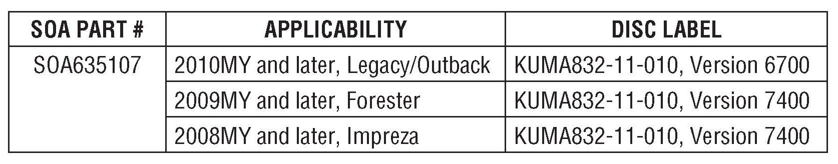 2010MY and later Legacy/Outback