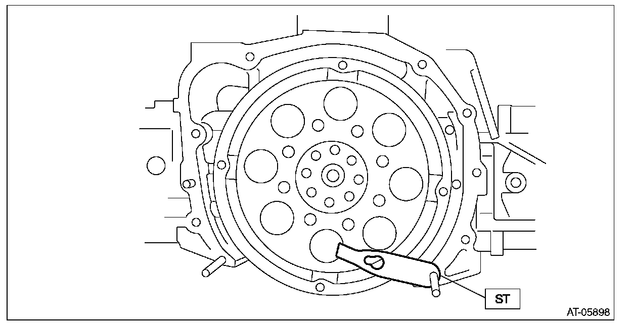 (3) While checking the tightening angle with the ST, tighten the drive plate mounting bolts to the specified angle.