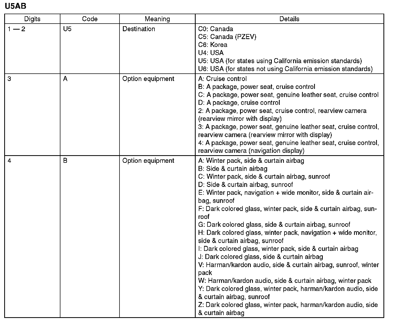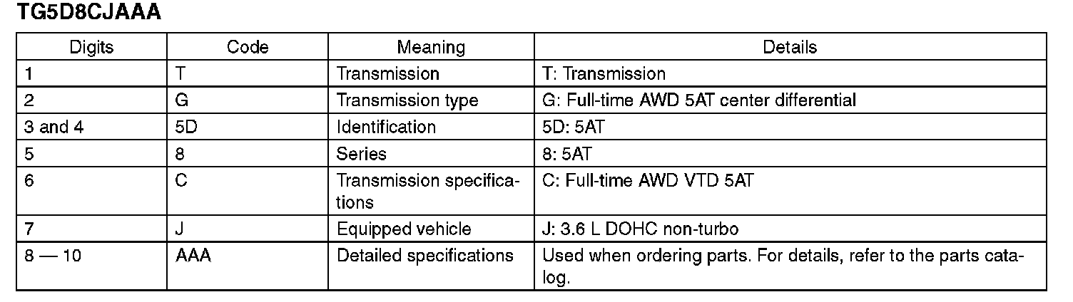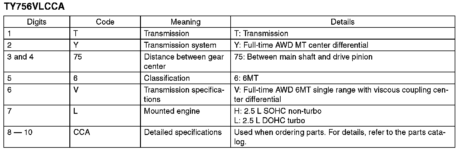 The model number plate indicates: the applied model, the option code, the trim code, the engine type, the transmission type, and the exterior color code. This information is helpful when placing orders for parts.