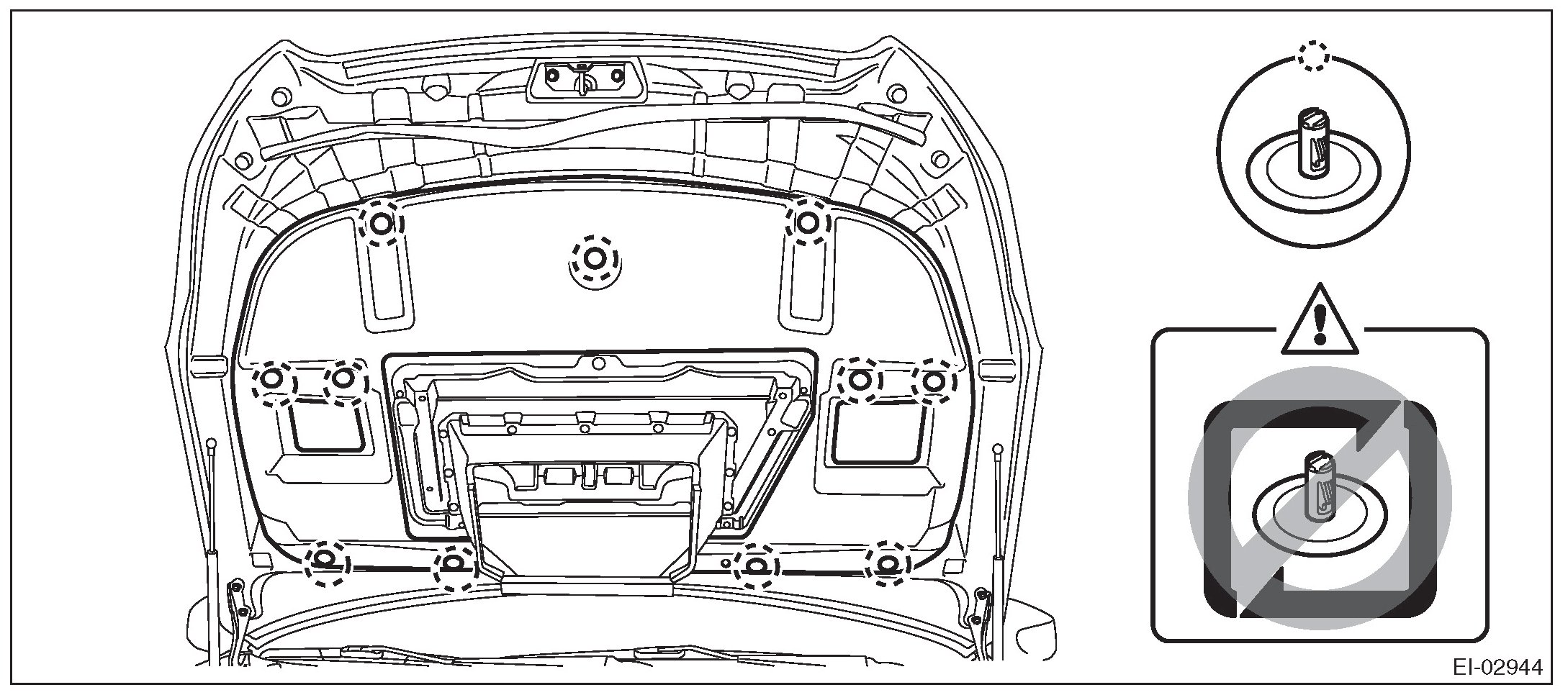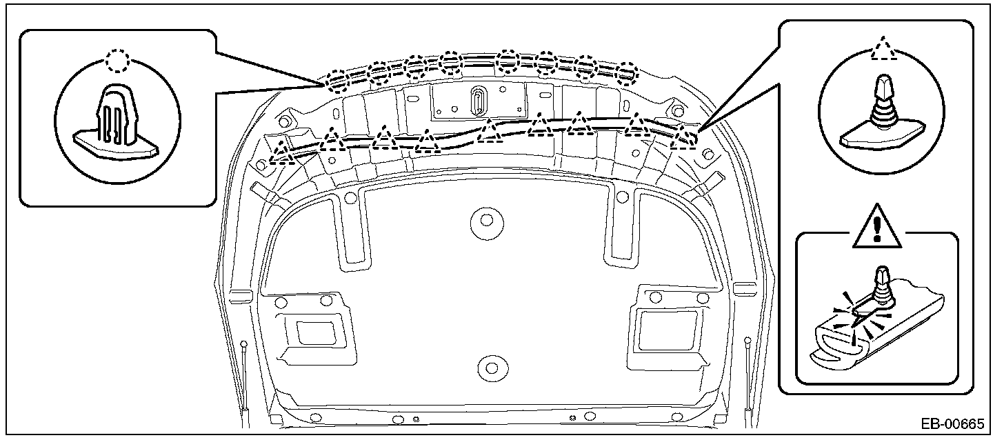 CAUTION: Do not reuse any clips damaged during removal. The damaged clip cannot fix the insulator securely. Therefore, always replace with a new part.