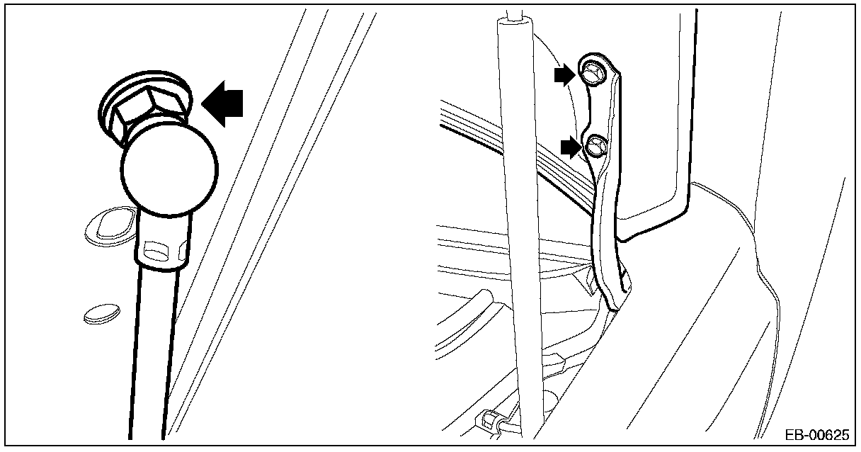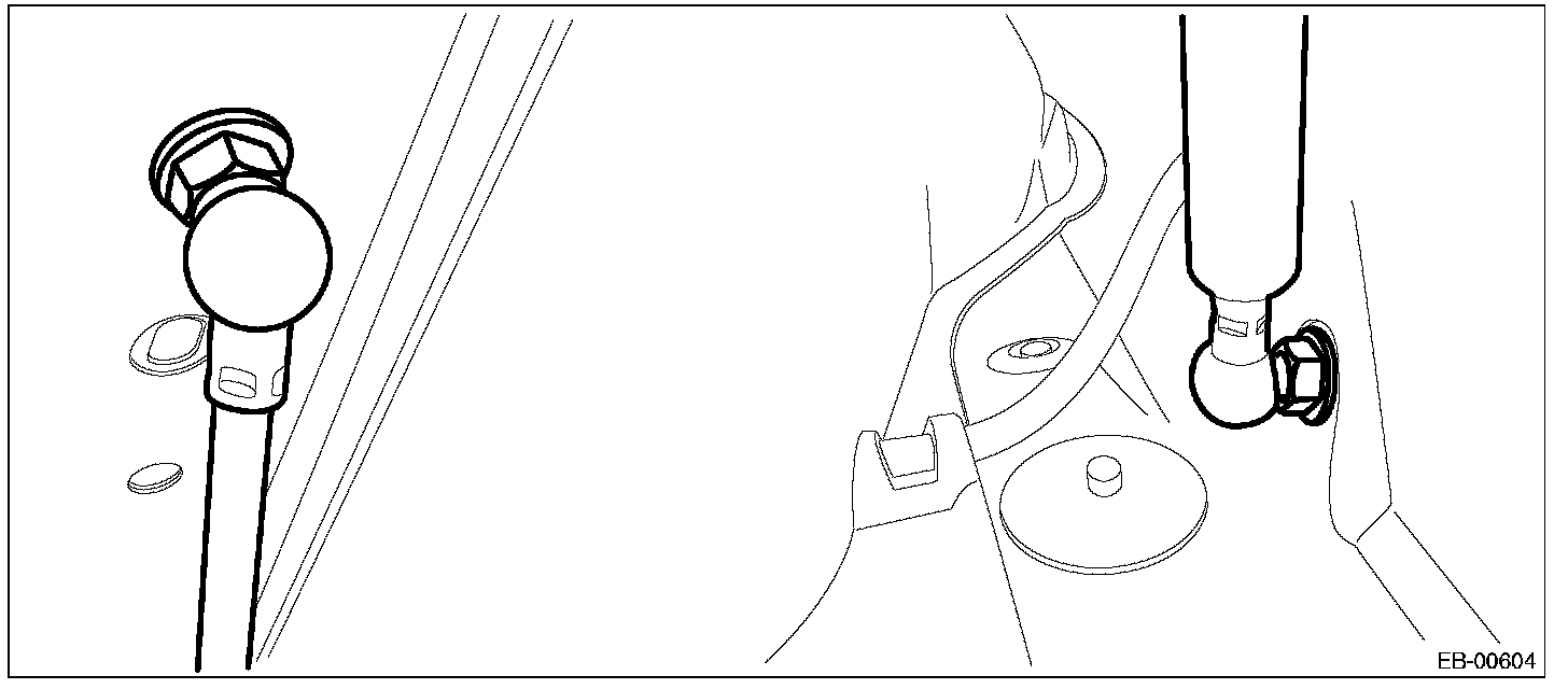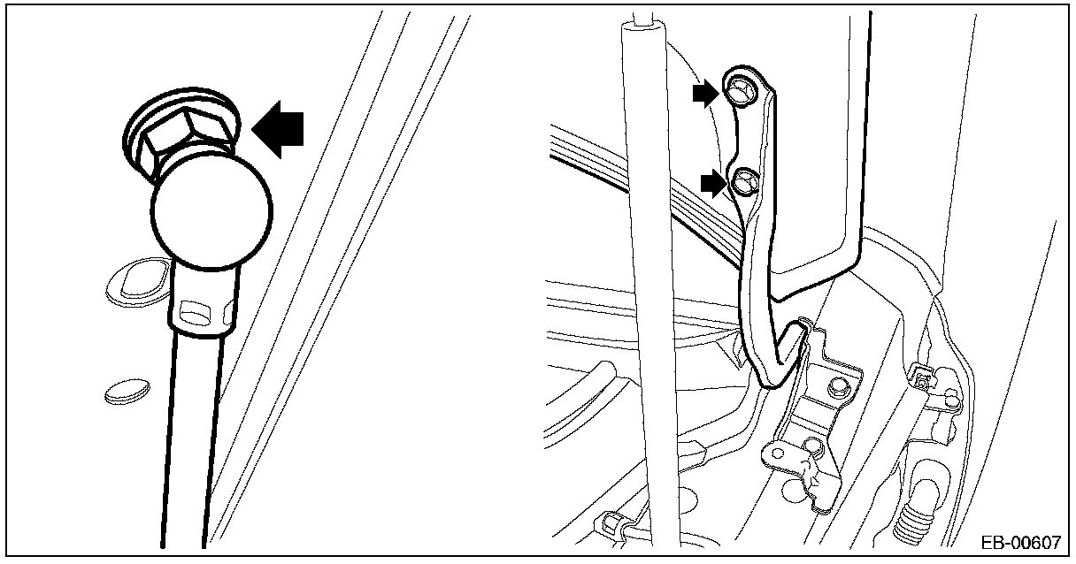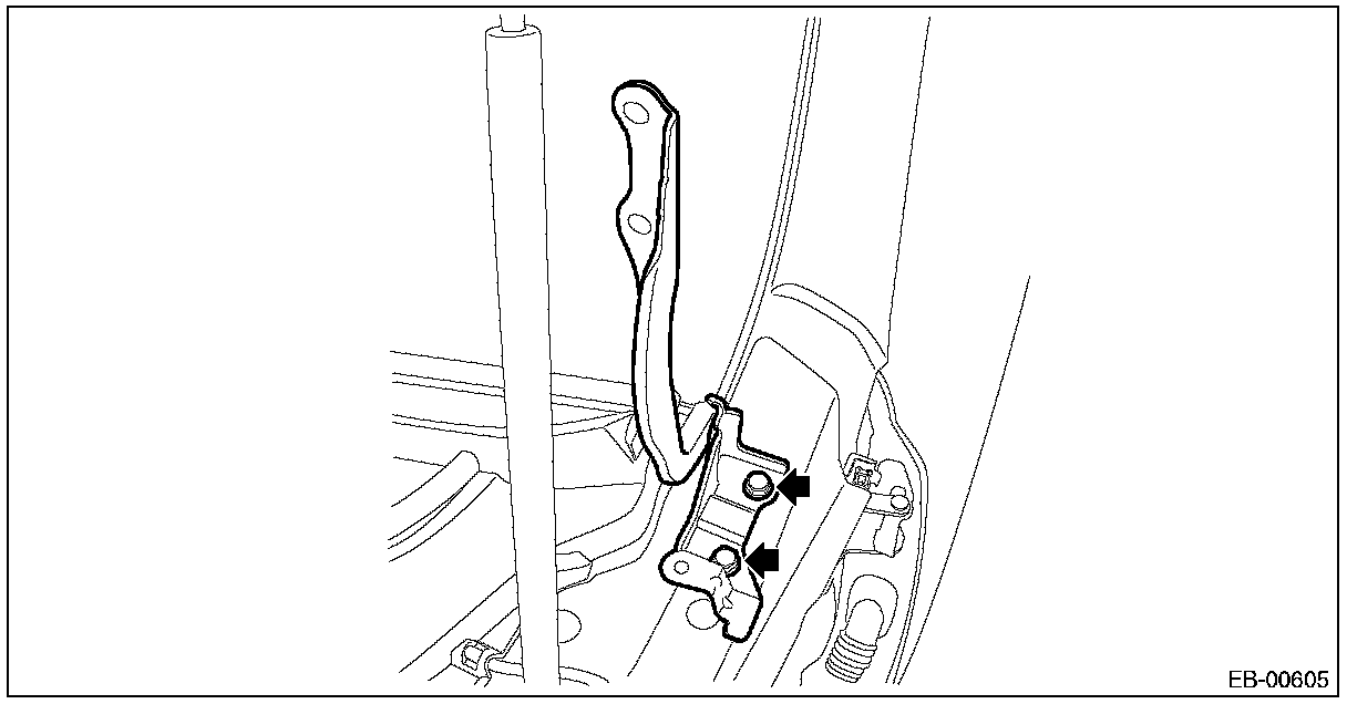 1. Remove the damper stay mounting bolt on the hood panel side.