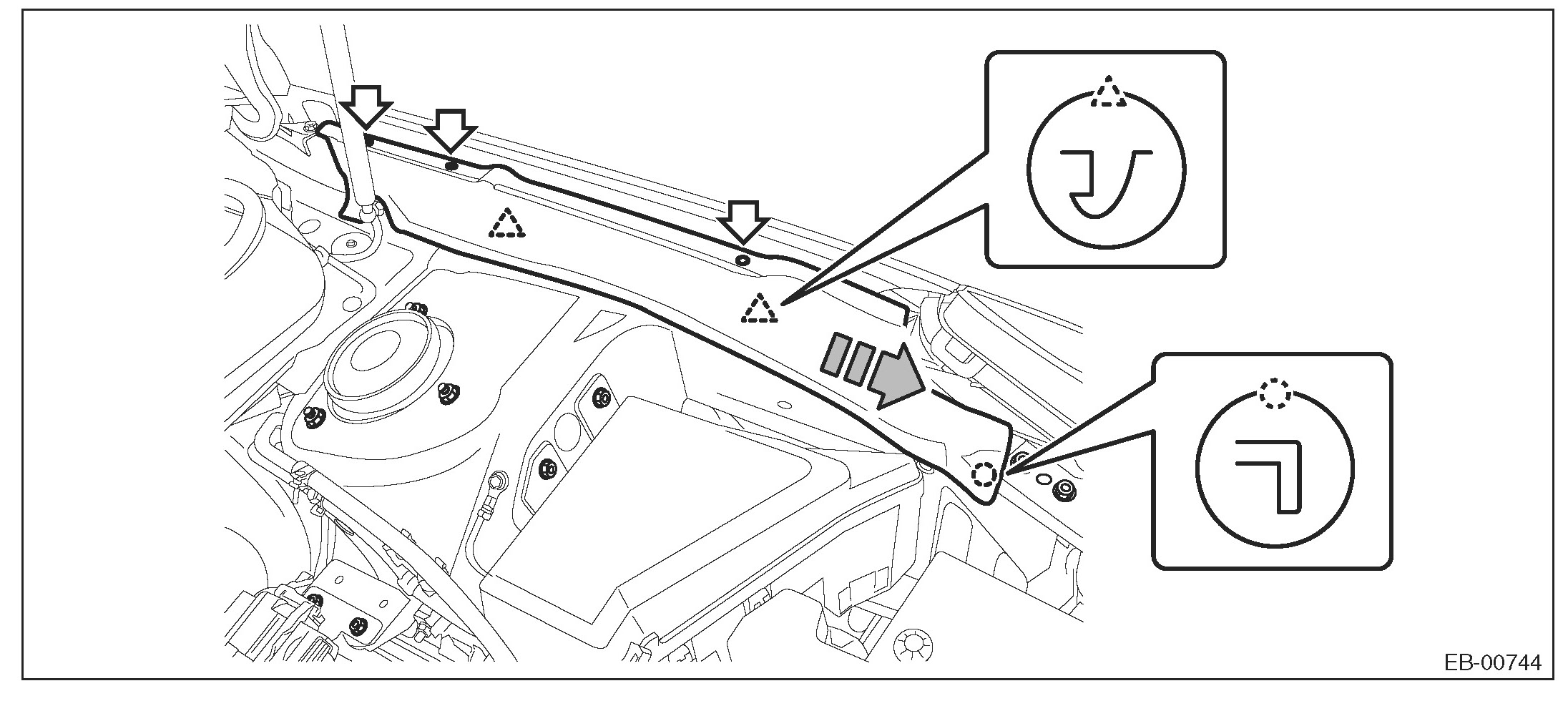 CAUTION: If the weather strip clip is removed with excessive force, the seal may be damaged. Be sure to use clip remover, etc. to remove.