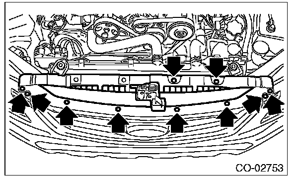 Remove ten clips when removing the grille bracket.
