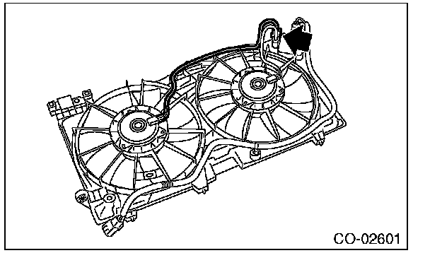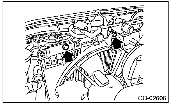 1) Tighten the bolts on the upper side of radiator fan shroud.