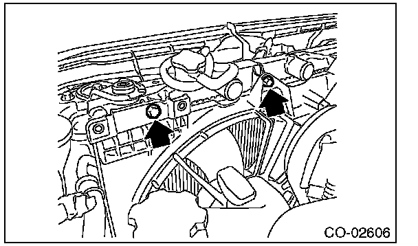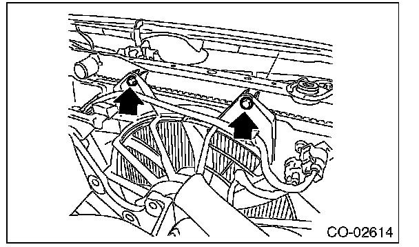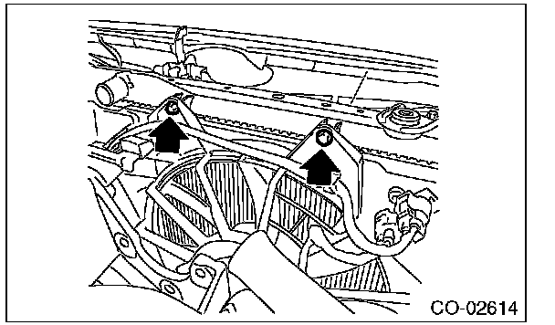 13) Remove bolts on the upper side of radiator fan shroud.