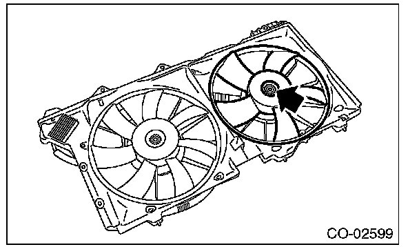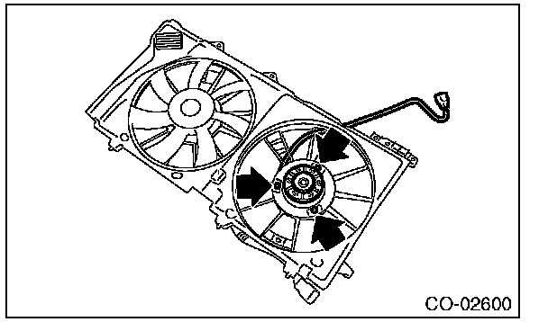 Check that the radiator main fan, radiator main fan shroud and main fan motor do not have deformation, cracks or damage.