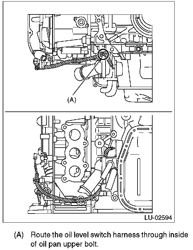 2) Attach the oil level switch to the oil pan upper.