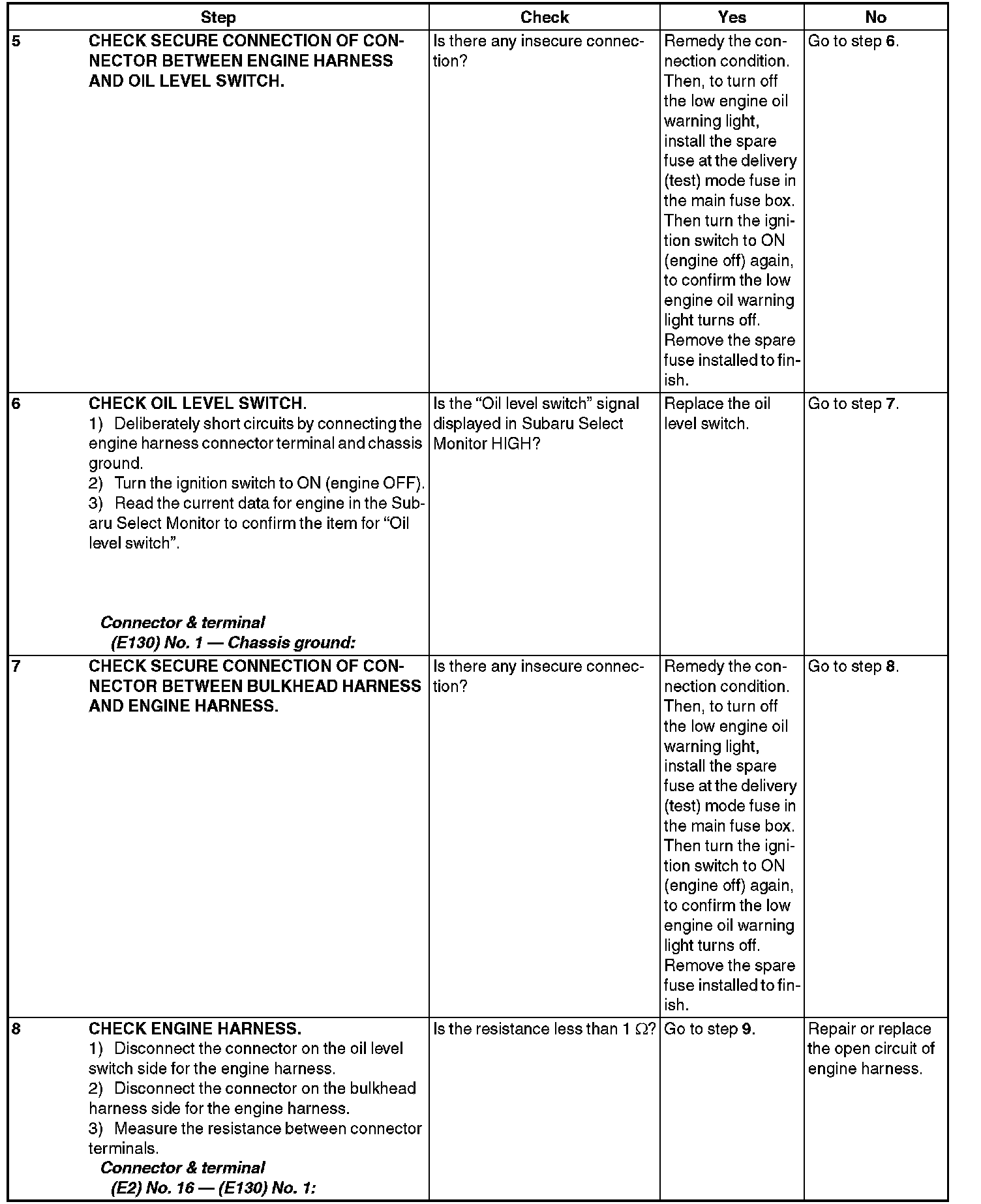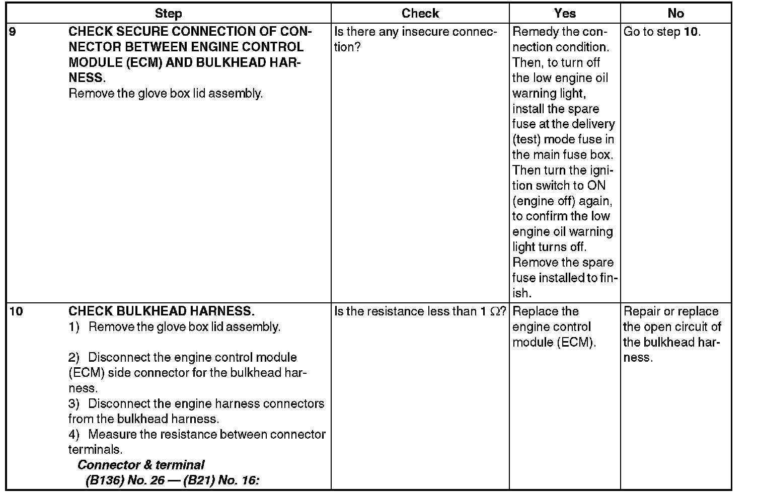 INSPECTION WHEN LOW ENGINE OIL WARNING LIGHT IS ILLUMINATED