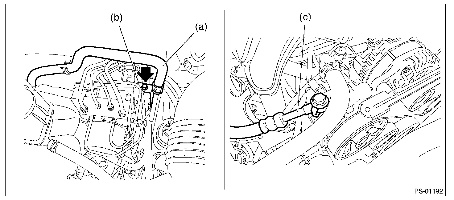 (3) Remove the hose (c) from power steering pump.