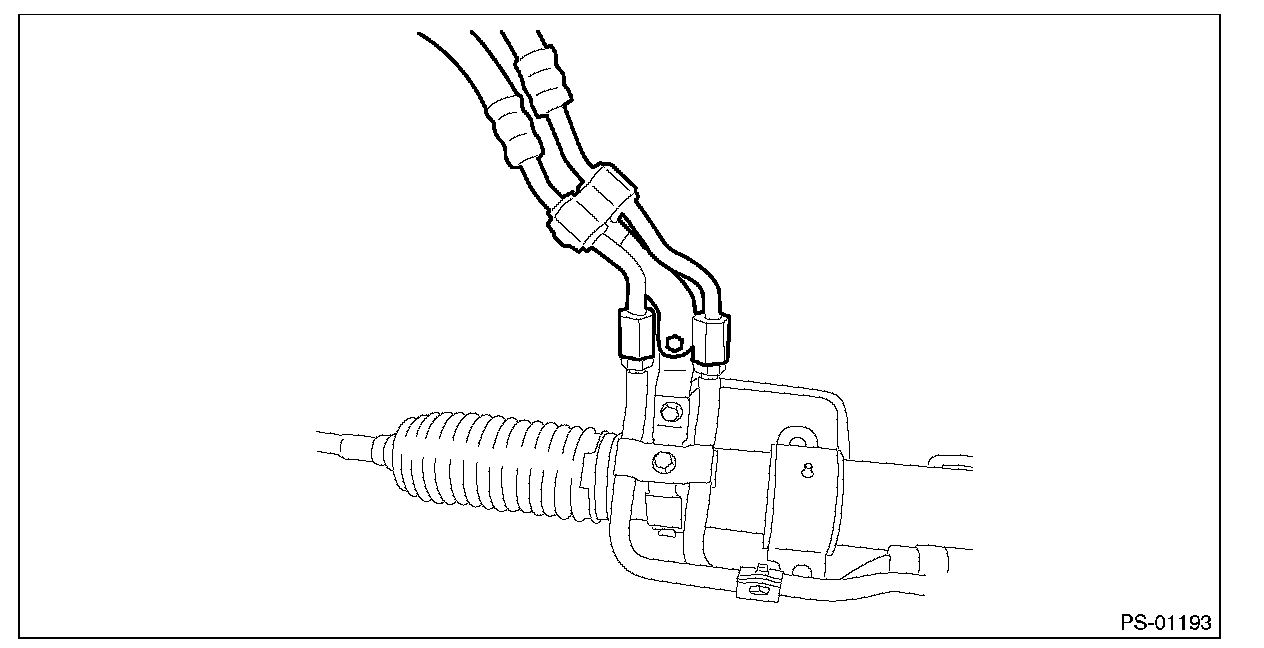 4) Disconnect the hose assembly from the steering gearbox.
