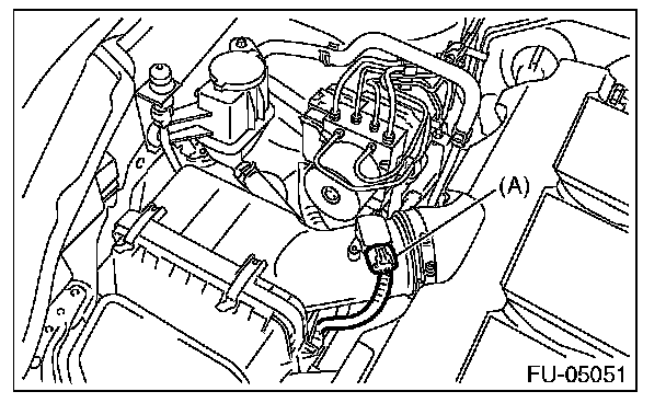 2. Disconnect the connector (A) from air flow and intake air temperature sensor.