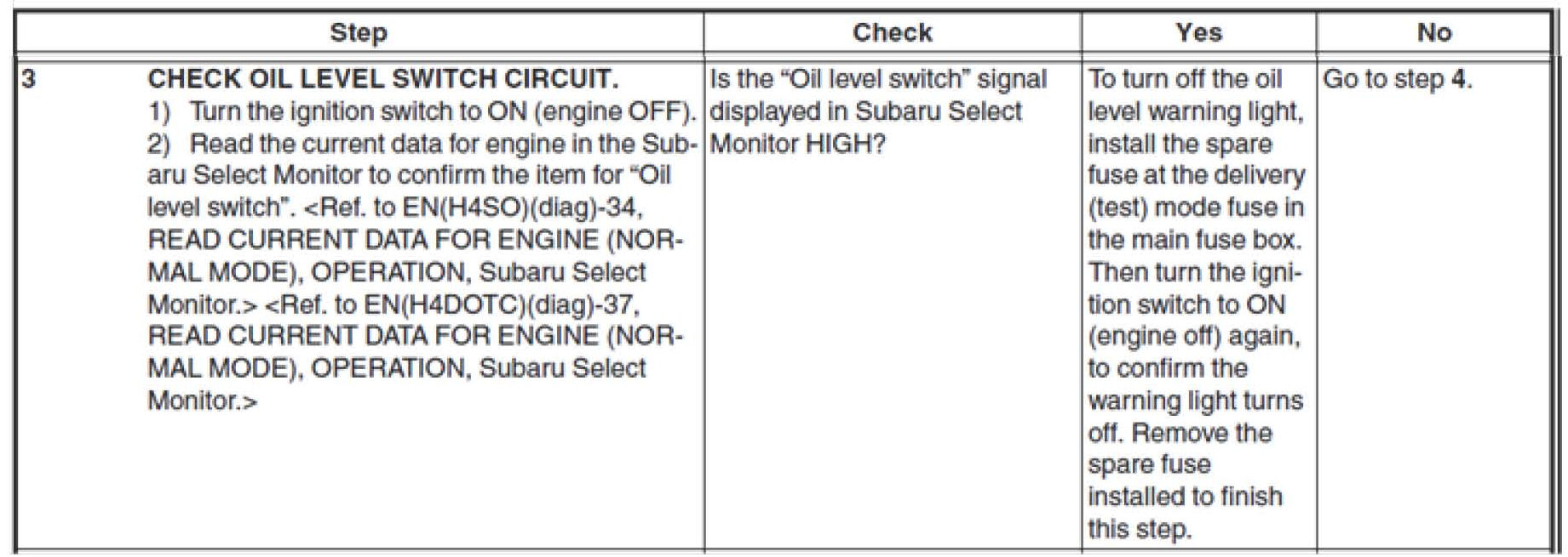 Engine - Oil Level Switch Inspection Clarified