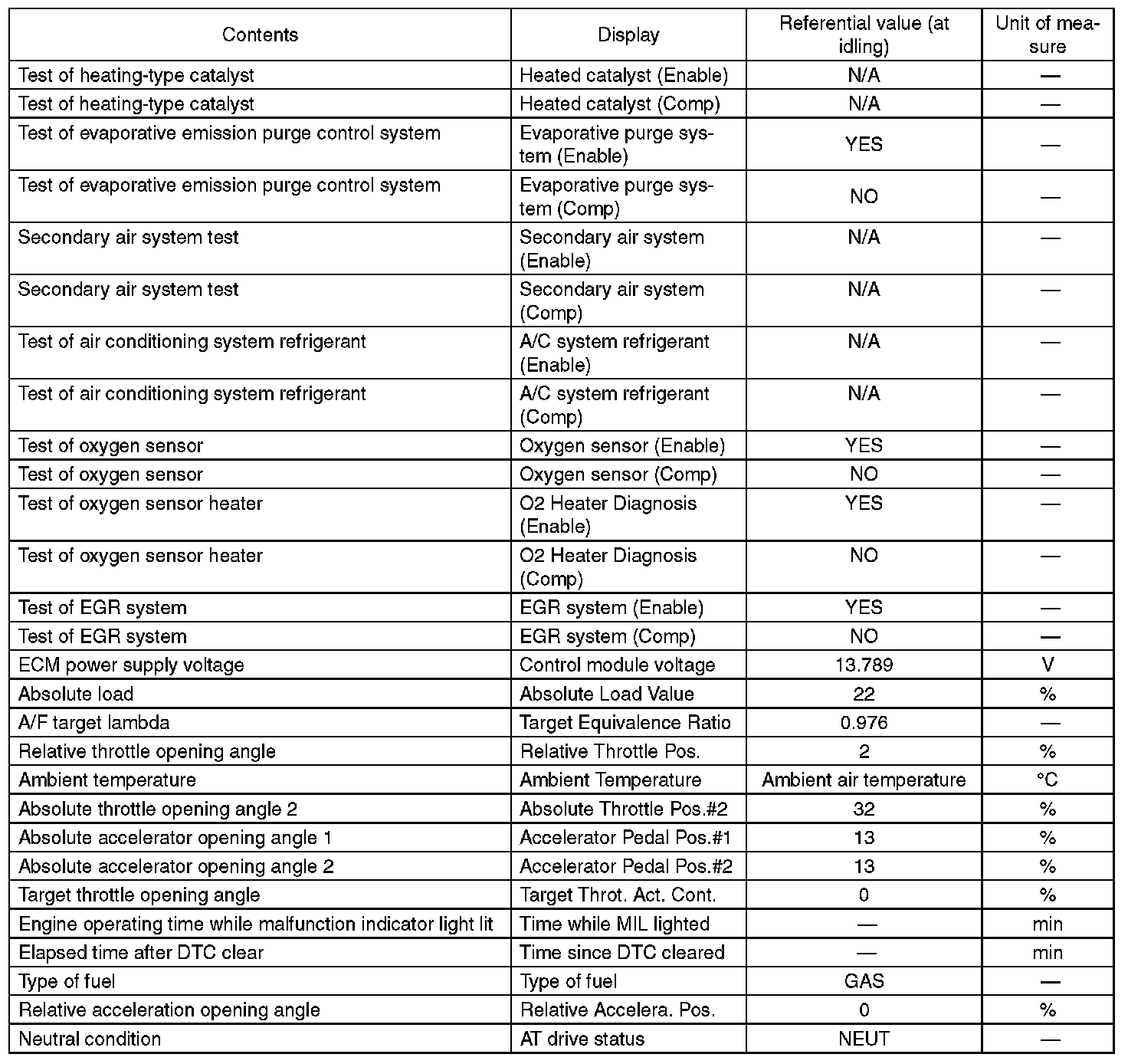 3. READ CURRENT DATA FOR ENGINE (OBD MODE)