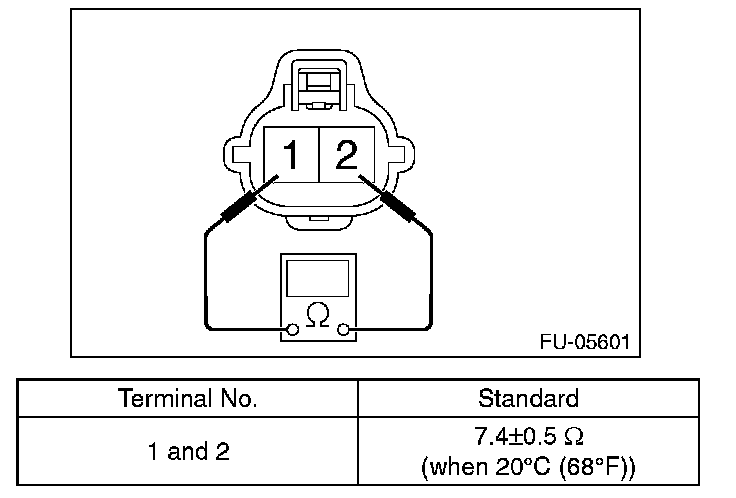 2. Measure the resistance between the oil flow control solenoid valve terminals.