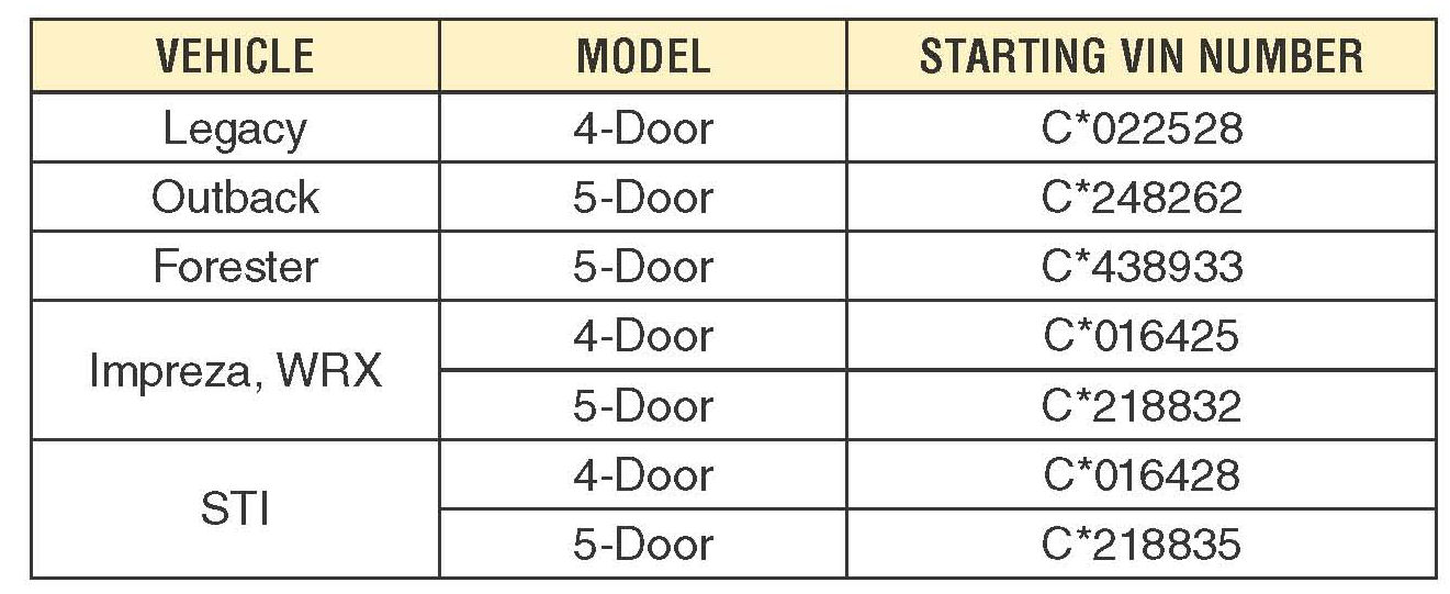 2010-12MY Legacy and Outback Models
