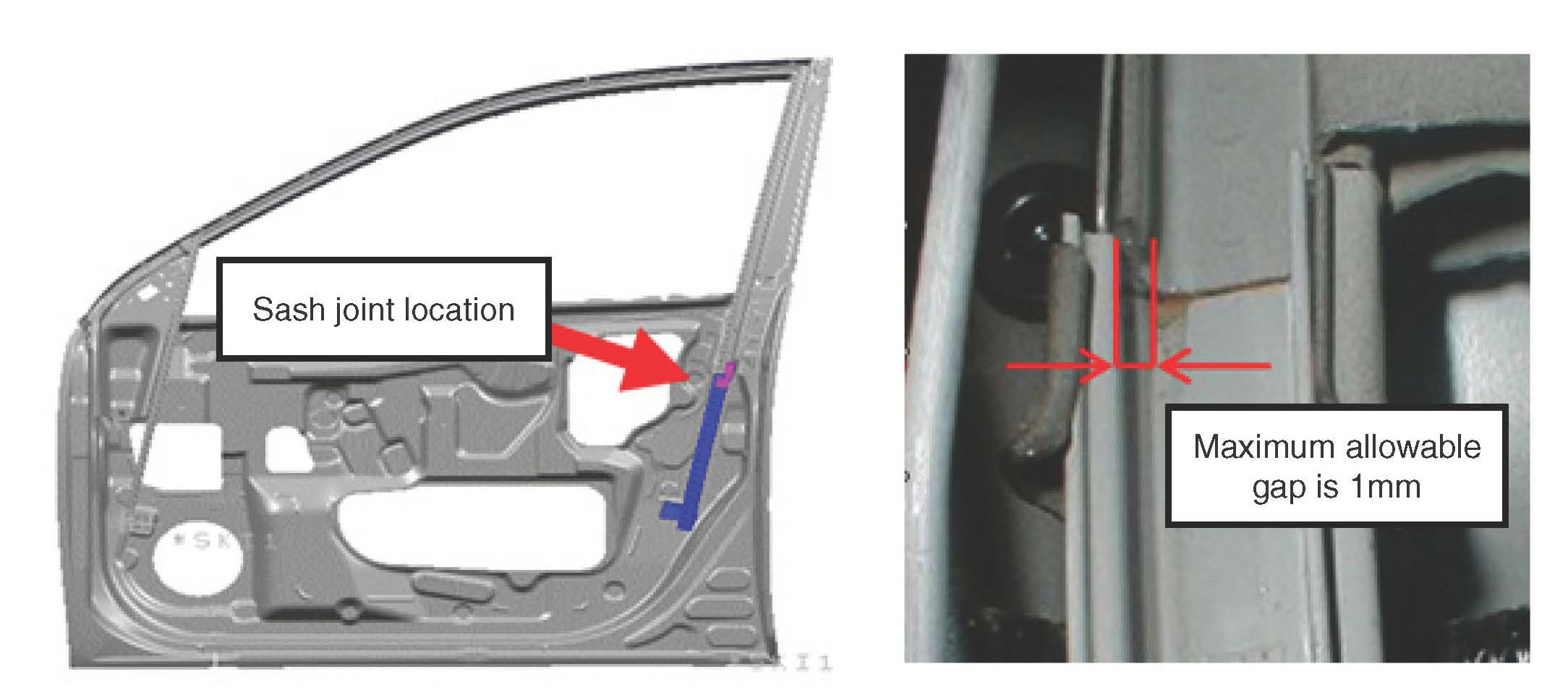 This Bulletin provides an inspection and repair procedure to address a misalignment of the rear upper and lower window sash which may cause the front door glass to bind or move slowly when opening or closing. This condition may also cause erratic operation of the power window Auto-Up feature (if equipped). In some cases, when closing the window, the system may mis-interpret the binding condition and activate the pinching hazard prevention feature and reverse the motor's direction.