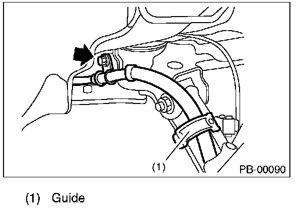7) Remove the cable clamp, and remove the parking brake cable from the guide.