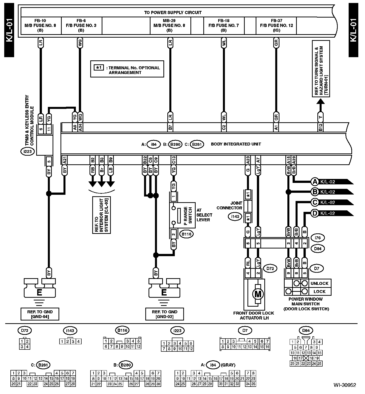 The locations of the Connectors or Grounds shown within these diagrams can be found via the connector or ground number at Vehicle Locations.