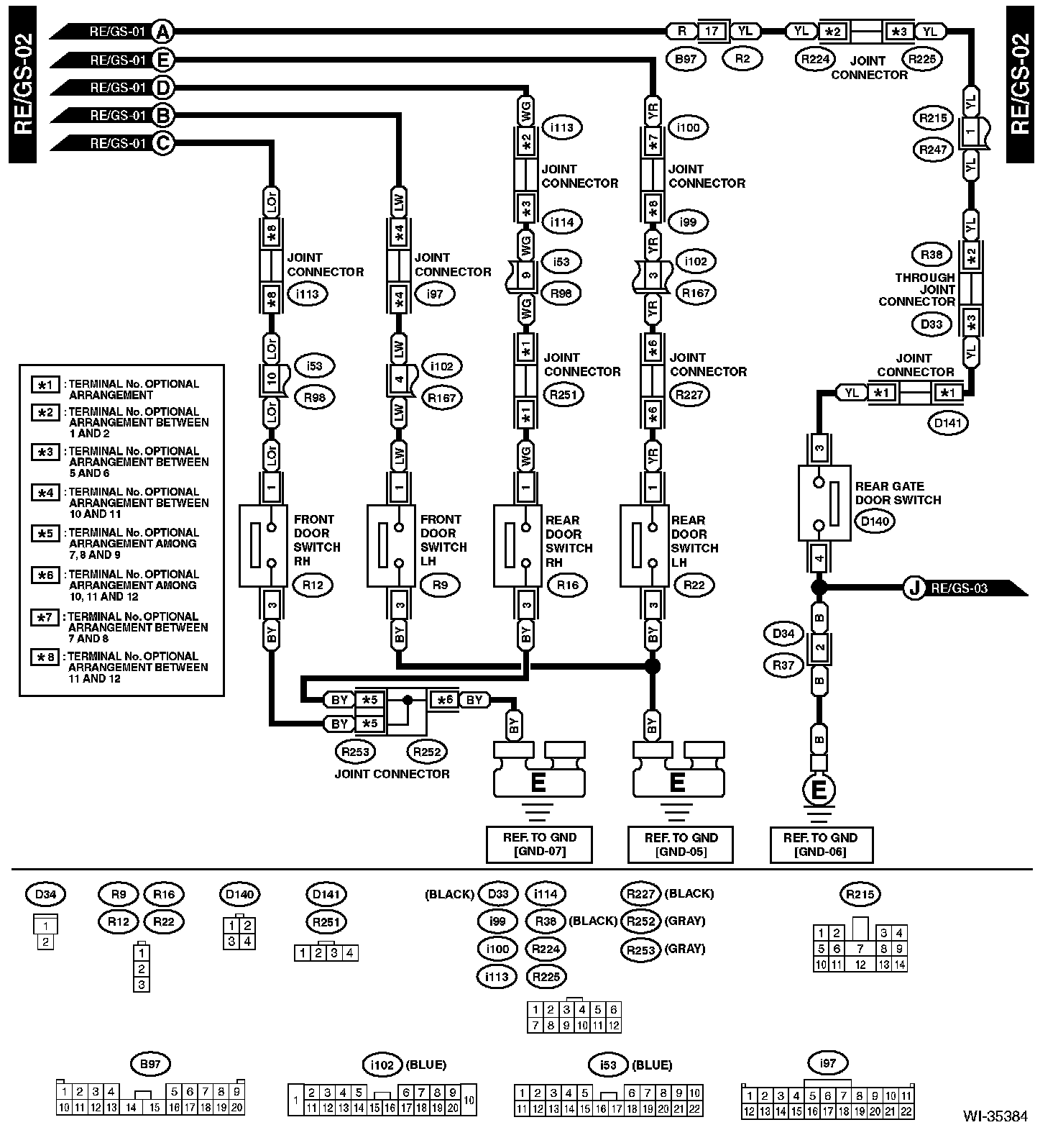 Connector and Ground Locations: The locations of the Connectors or Grounds shown within these diagrams can be found via the connector or ground number at Vehicle Locations. Locations