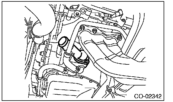 3) Install the radiator outlet hose to the radiator lower and the thermostat cover.