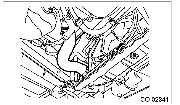 4) Remove the radiator outlet hose from the radiator lower and the thermostat cover.