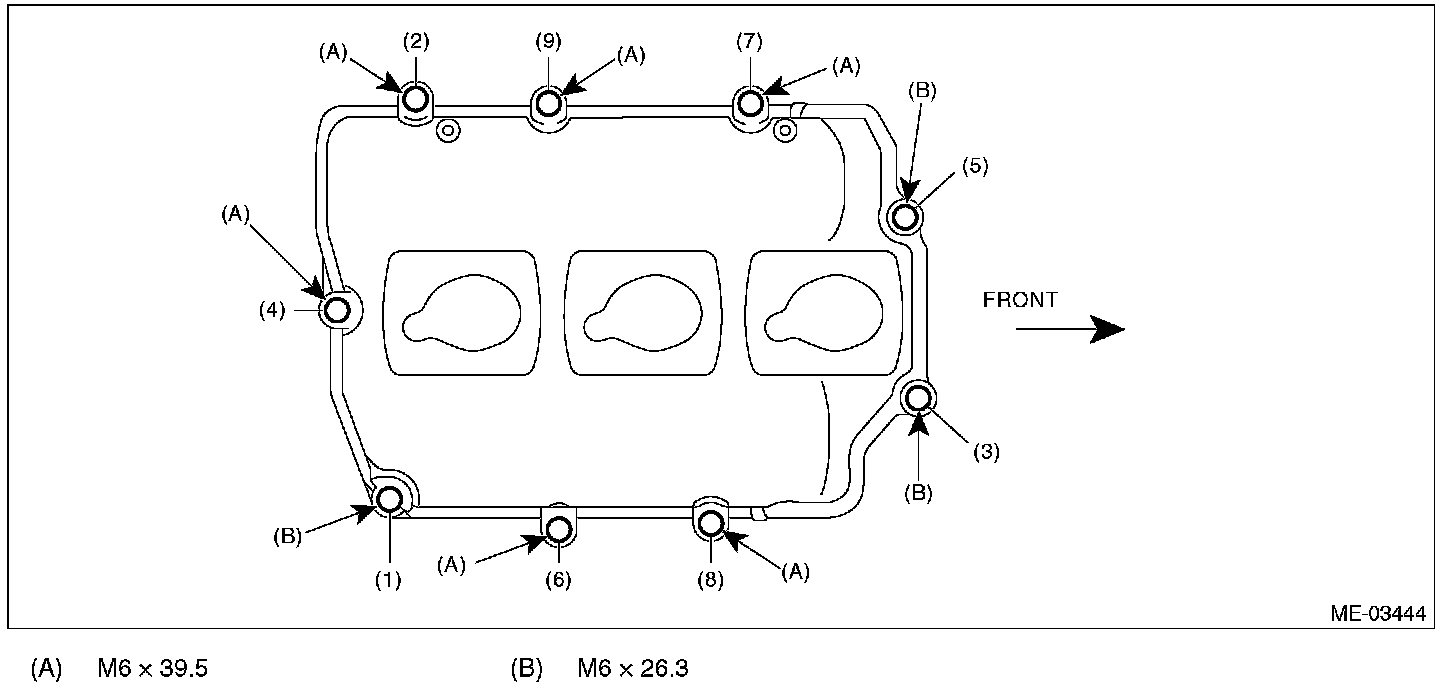(3) Tighten the rocker cover bolts in the numerical order as shown in the figure.