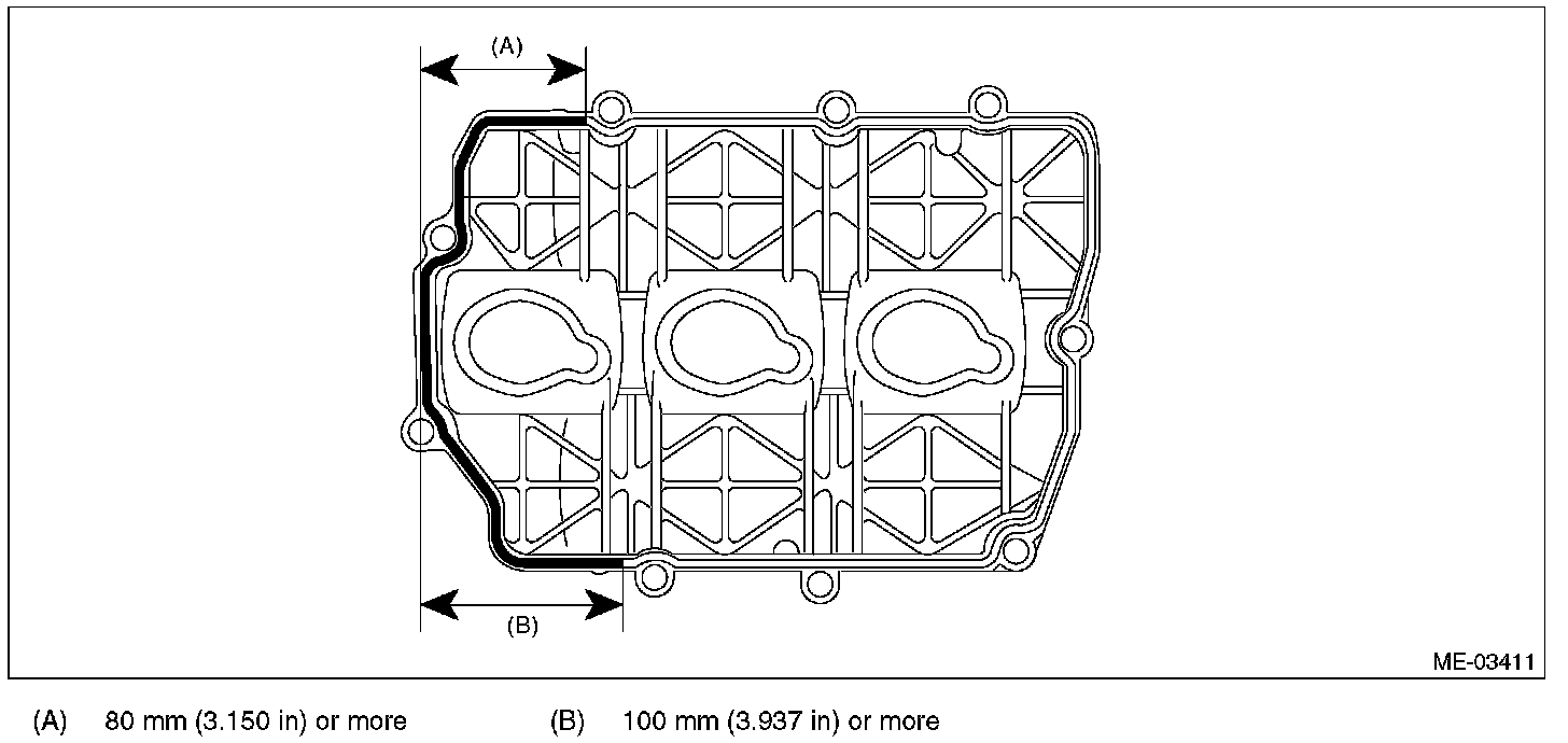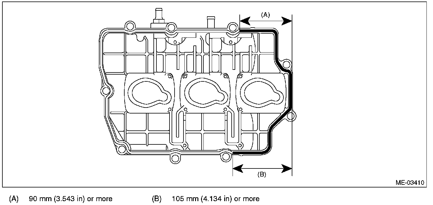 (2) Apply liquid gasket sparingly to the mating surface of cylinder head and rocker cover as shown in the figure.