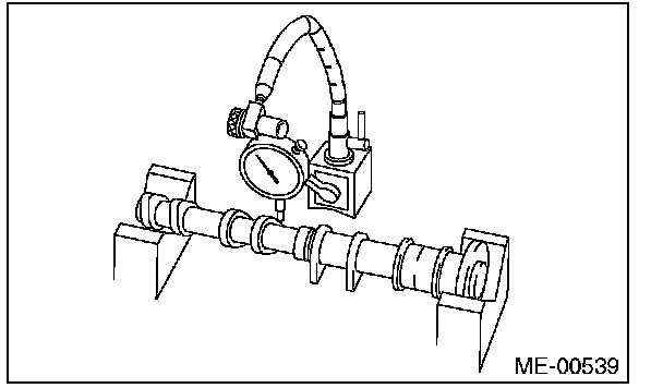 6) Measure the outside diameter of camshaft journal. If the journal diameter is not within specification, check the oil clearance.